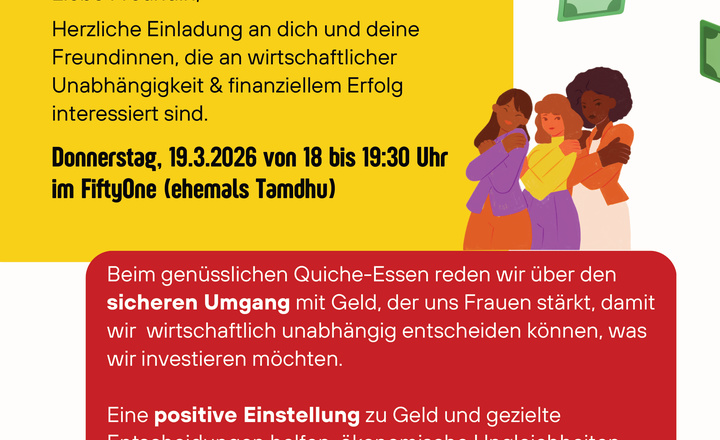 Beim genüsslichen Quiche wird über den sicheren Umgang mit Geld gesprochen. Eine positive Einstellung zu Geld und gezielte Entscheidungen helfen, ökonomische Ungleichheiten abzubauen, das Leben selbst zu gestalten und für eine sichere...