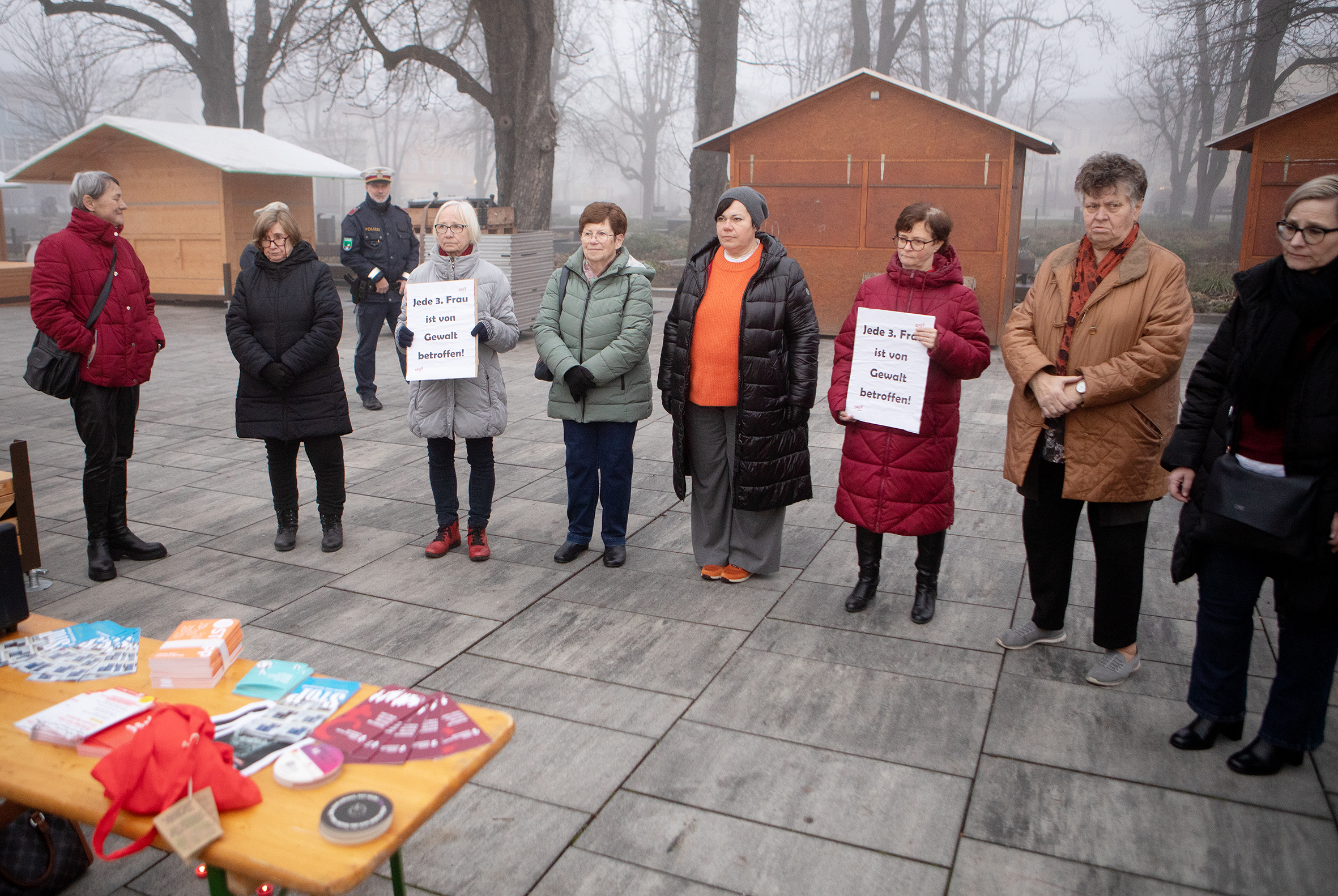 Bildtext Starkes Zeichen gegen Gewalt an Frauen_1 & _2: Mitglieder der SPÖ Frauen Oberwart setzten gemeinsam mit SPÖ Burgenland-Landesfrauengeschäftsführerin Sandra Gerdenitsch ein starkes Zeichen gegen Gewalt an Frauen.